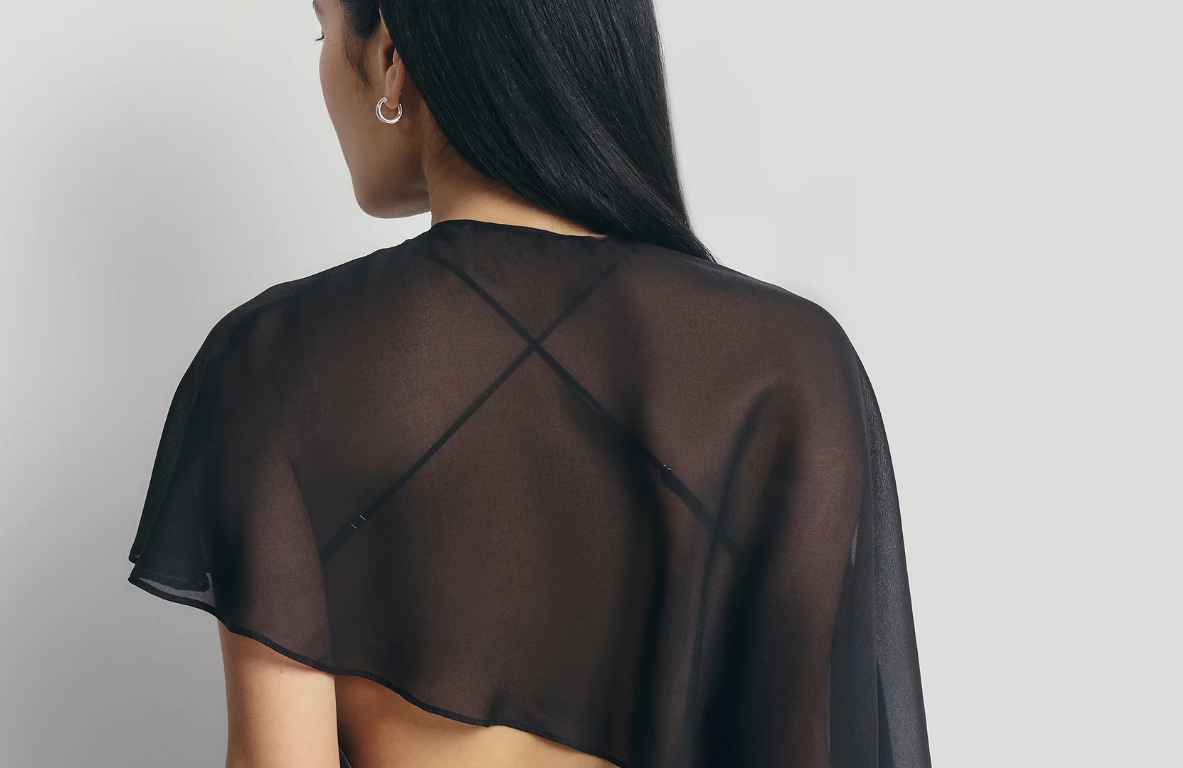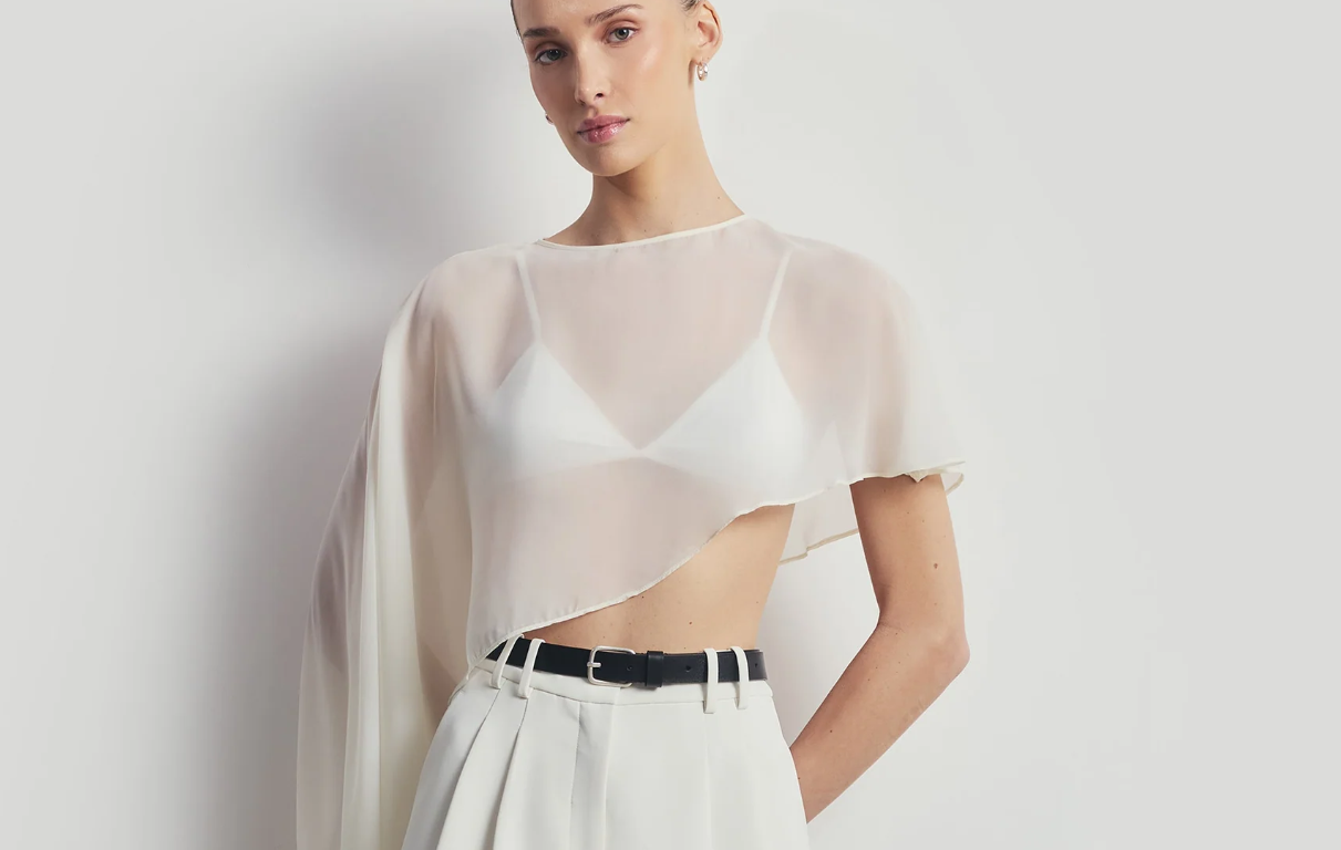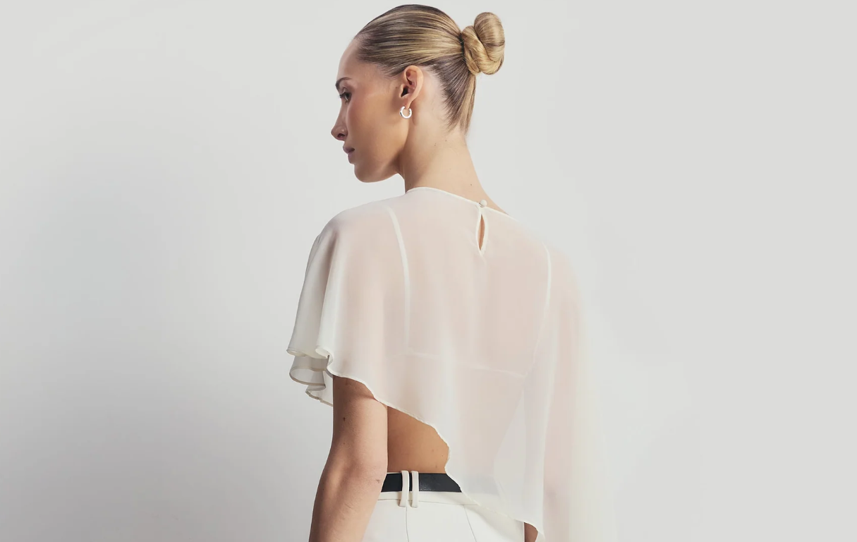 Uma capa leve e sofisticada, com acabamento fluido e elegante que valoriza a silhueta com sutileza. Ideal para composições modernas e refinadas, trazendo um toque minimalista e atemporal ao look.